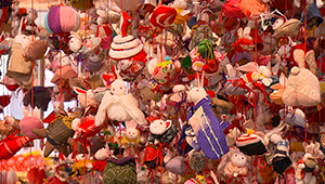 高さ約10m。ギネス記録に認定された巨大つるし雛を展示。