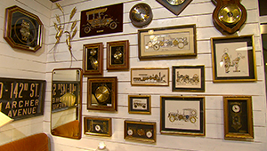 腕時計のパーツを使ったアートと実用性を兼ねた壁かけアートや、雰囲気のある家具、インテリアのアクセントにもなる古い洋書など、一点ものが多く並びます。