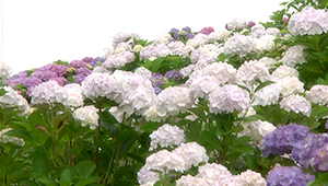 約5000株ものあじさいが道行く人の目を楽しませてくれます。
