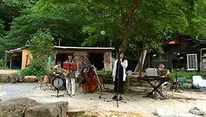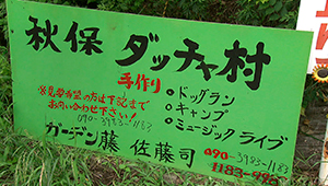 植木屋さんがご友人と手作りする自然の遊び場。渓流のせせらぎが聞こえる広大な土地を、営業しながら今も整備を進めています。看板も手作りの味たっぷり。ドッグランあり、キャンプやBBQもでき、自然の中で演奏を楽しむ場としても利用できます。
