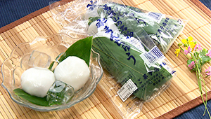 名物の水まんぢゅう。自家製のこしあん、地元のササニシキを蒸して生地を作り、竹林からとってきた笹の葉にくるんでいます。食べる前に氷水に浮かべて頂くのがおすすめ。つるんとした食感は絶品。この季節にしか味わえないお菓子です。