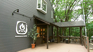 庭の奥の杉林の道は、まるで妖精がでてきそうな空間です。魔女ハウスは、フリースペース。ワークショップ等(予約)で利用可能です。