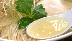 鶏・魚介・貝のトリプルスープがバランスよいうま味、全粒粉の歯切れよい麺が心地よいおいしさ。チャーシューは豚バラと鶏ムネの2種類味わえます。
