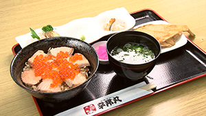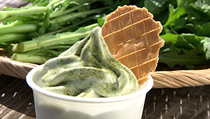 魚介や野菜、特産品を販売。はらこめし等に並んで人気のソフトクリームは、春菊を使ったものもあります。実は亘理町の春菊は、県内生産ナンバー1。出荷する際にはずした葉を粉末にして使用。クセもなく、まるで抹茶のようです。春菊にはβ-カロテンや食物繊維などの栄養があるそうなので、おすすめ。