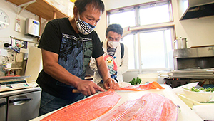 小型底引網船「幸邦丸」の船長のお店。新鮮な魚介類を販売しています。