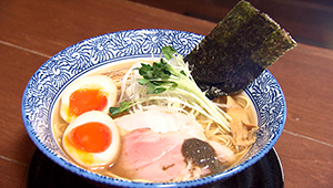 アジ節やサバ節、煮干や昆布などのダシが味わい深く、国産小麦と全粒分、卵白粉でつくるストレート細麺がよくあう一杯。