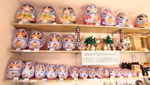 竹駒神社の入口に昔からあるお店。松川だるまなどの縁起物を扱っているお店。
