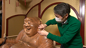 笑顔の布袋尊は実在した中国の禅僧で、吉兆や天候を予知する力に長けていたといわれています。布袋様の像に触れてもいいそうですよ。