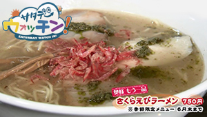 ホタテ・昆布などを使った塩ダレにさくらえび、そしてバジルソースも。スープとさくらえび、バジルソースが見事にマッチ。イタリアン風な感じで、すっきりとした味わいです。3日連続で食べに来た方もいるそうですよ。6月末までのメニューなのでお早目にどうぞ。