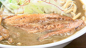| ●チャーシュー | 豚バラ肉を使用。半日特製ダレに漬け込み、提供する際、ガスバーナで炙る。 |