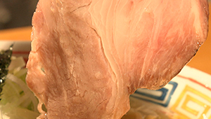 | ●チャーシュー | イベリコ豚の肩ロースを使用。塩・コショウをかけ、冷蔵庫で4~5日熟成させ、フライパンで表面だけを焼き、しょう油ダレにつけて低温で2時間半煮込んだもの。 |