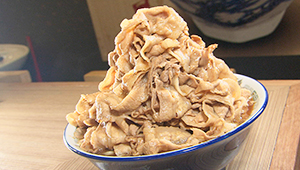 | ●注目の肉 | 丼の半分の面積が肉。中トロ肉の希少な部位を使用し、仕上げに、あまじょっぱく煮込む。 |