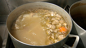 | ●スープ | 豚のゲンコツ、鶏がら、野菜をおよそ5時間煮込んだもの。 |