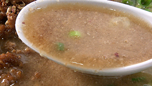| ●醤油ダレ | 黒酢使用。豚肉からとった出汁、牡蠣のうまみも加えている。 |