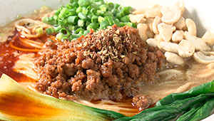 | ●肉みそ | スープとよくからみ、カシューナッツがアクセントに。 |