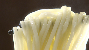 | ●麺 | 自家製の細ストレート麺。岩手県産ゆきちからの玄麦を使用し石臼でひいた麦を2度ふるいにかけ自家製麺にしている。 |