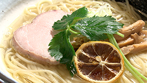 | ●チャーシュー | 豚モモ肉をおよそ15時間 ゆっくり火にかけて作ります。 しっとりとした食感でスープとの相性もグッド! |