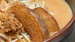 | ●炙りチャーシュー | 豚バラ肉を信州味噌に漬け込み1日寝かせ熟成させたもの。 |