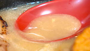| ●スープ | 豚骨、鶏がら、香味野菜、昆布を4時間煮込んだもの。 |