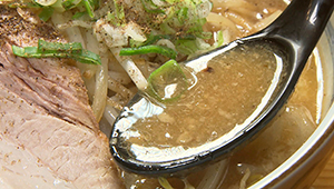 | ●チャーシュー | スープに負けない、味付け濃い目の豚バラチャーシュー。 |
