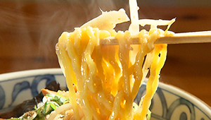 | ●麺 | 京都老舗製麺所の中太ちぢれ麺。 |