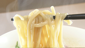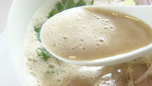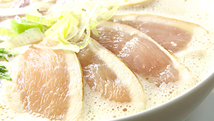 | ●スープ | 鹿児島県産の鶏がメインの白濁スープ キレのある特製しょう油ダレ ブレンダーで泡立てることでコクがアップ |