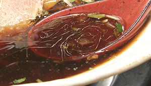 見た目を良い意味で裏切るあっさりコク旨スープ。