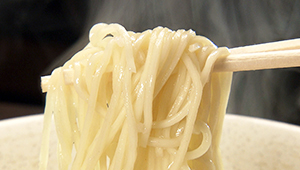 | ●スープ | 豚のゲンコツと背骨などを低温でじっくり6時間煮込み、煮干しやソウダガツオ節などでつくる特製塩ダレをあわせたあっさりスープ |