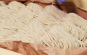 店主はスープのにぼしと日々向き合い、製麺を担当する奥様は、そのスープと一緒になったときにスープをひっぱりなめらかな食感になるようにと試行錯誤をし、製麺機に向かう。ふたりの情熱がつくりあげる一杯。