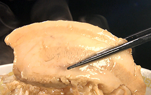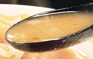 | ●スープ | ブランド豚ジャパンX使用 ゲンコツ 背ガラ バラ肉 豚足などあらゆる部位を6~7時間強火で煮て旨味抽出 にんにくや玉ねぎなど加えた特製しょうゆダレとあわせる 豚の背脂で深みとコク+ |