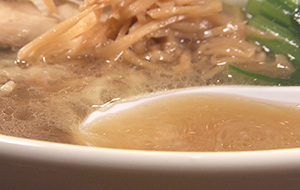 雑味がなくまろやかにうまみが広がるスープに、さらに香味油で香りとコクもプラス。