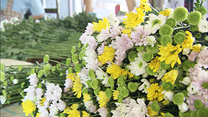 南三陸町歌津で菊の花・トマトを作っている小野花匠園。2011年の震災時、山側の畑にまで津波が押し寄せました。それからわずか2ヶ月で、難を逃れた畑に菊の苗を植え再開。