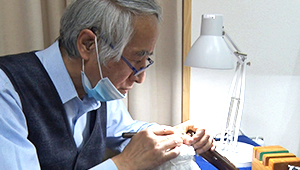その鮎川で祖父の代から「鯨歯工芸品」を作る千々松正行さん。