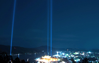 3月11日の夜、3本の光が気仙沼の夜空に現れました。