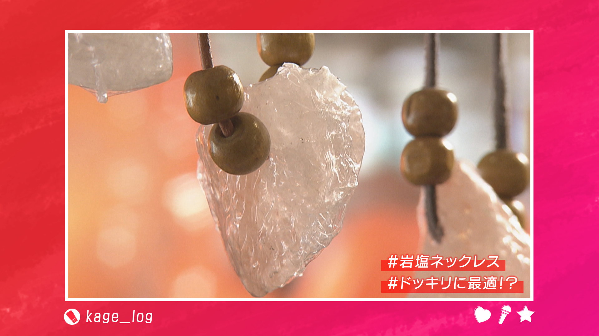 塩のランプ、塩のネックレス、塩の指輪…ほぼ塩で埋め尽くされた店内に大興奮。
