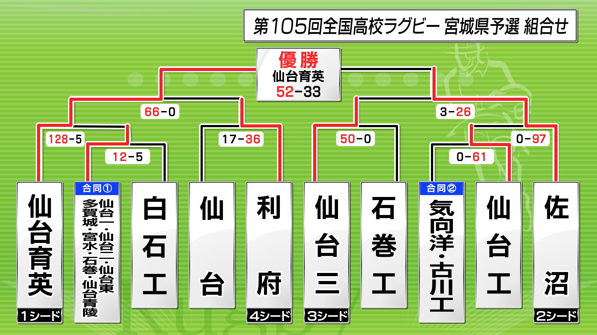 仙台育英(第1シード) VS 仙台一・仙台二・仙台東・多賀城・宮城水産・石巻・仙台青陵