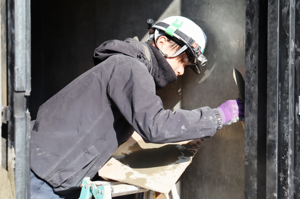 マンションや大型商業ビルなど、鉄筋コンクリート造の建物の左官工事を担当。『自分の携わった建物が、カタチになって残ること』それが一番のやりがいです。完成後、その建物がテレビなどで取り上げられているのを見ると、非常に誇らしい気持ちにもなりますね。将来は、技術的にも人間性も優れた左官職人になりたいです。