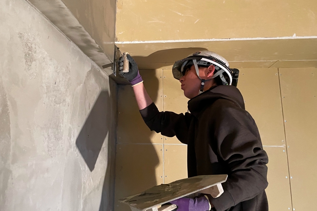 職場見学時、鏝を使って壁を塗る『塗り壁体験』を経験。とても楽しくて「もっと左官のことを知りたい!」と思ったことがきっかけでした。毎月支給される各種手当や寮生活など、充実の福利厚生も魅力です。そして先輩も後輩も、みんながフレンドリー。コミュニケーションが取りやすい環境なので、仕事もはかどります。