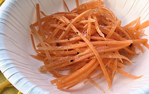 千切りにカットした人参に市販のイタリアンドレッシングをかける。イタリアンドレッシングがニンジンの旨味をより引き出す。