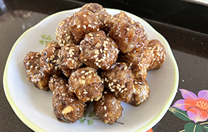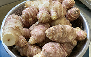皮のままの菊芋を一口大に切り、片栗粉を付けて油で揚げる(揚げ具合は串が通ったらOK)。 別の鍋に醤油、酒、砂糖を入れ火にかけて、砂糖が溶けたら揚げた菊芋と和えて完成。