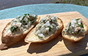 新玉ねぎとイタリアンパセリをみじん切りし、ツナ缶を入れ、塩コショウとオリーブオイルで味付けしたら、お好みのパンに乗せて完成。