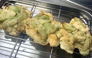 美味しく食べるゆで時間は約1分。ただ、味見しながら固さを確認。また、天ぷらにするのも美味しい。