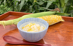 とうもろこしの実を芯から外したら『芯と一緒に』(←ここポイント!)ご飯を炊く! 味付けは塩コショウとバターのみ。品種は「ドルチェドリーム」。生で食べるとフルーツのような甘さ。