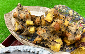 色麻町 早坂さんが育てたサツマイモ(シルクスイート)を使った『サツマイモのかき揚げ』