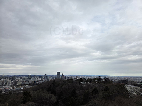 所々で雪や雨が降っているものとみられるが、北の山の稜線ははっきり見えている。
