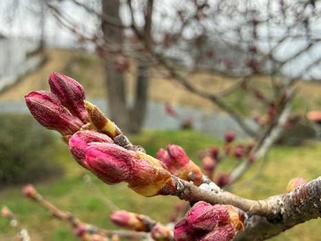 tbc桜まつりまであと10日。構内のサクラはまだ開花せず。