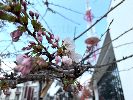 tbc構内のサクラも咲いてきた。日当たりの良い木は早くも見頃に。