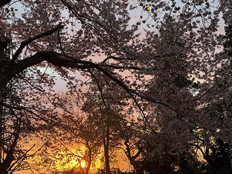 tbc桜まつり当日!雲多めながらも朝日が出ていた。
