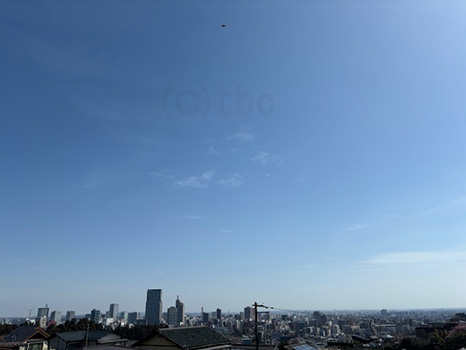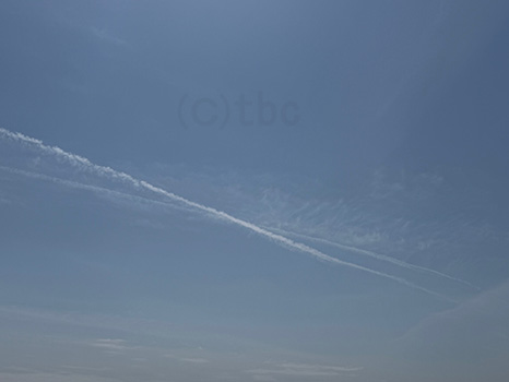 薄雲多め。飛行機雲が長く残るようになってきた。