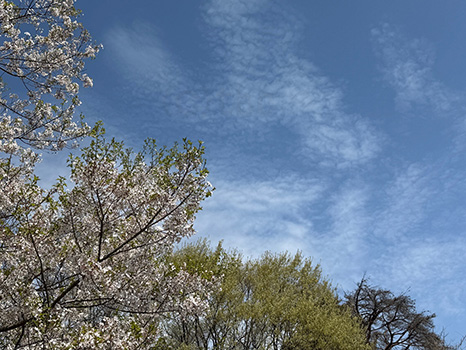 青空広がる。冷たい雨の一日だったきのうとは全く違い、春本番の暖かさ。